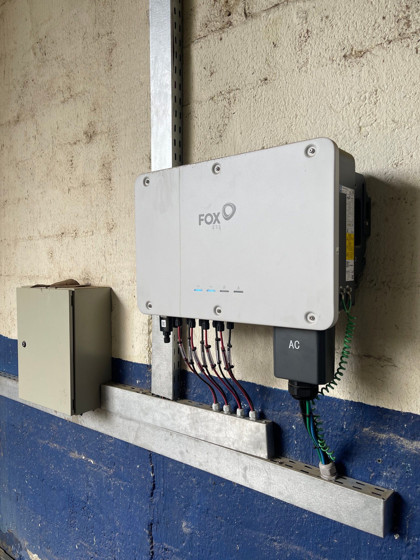 A 50 kW rooftop array supplies most daytime power, lowering energy costs and reducing carbon emissions.