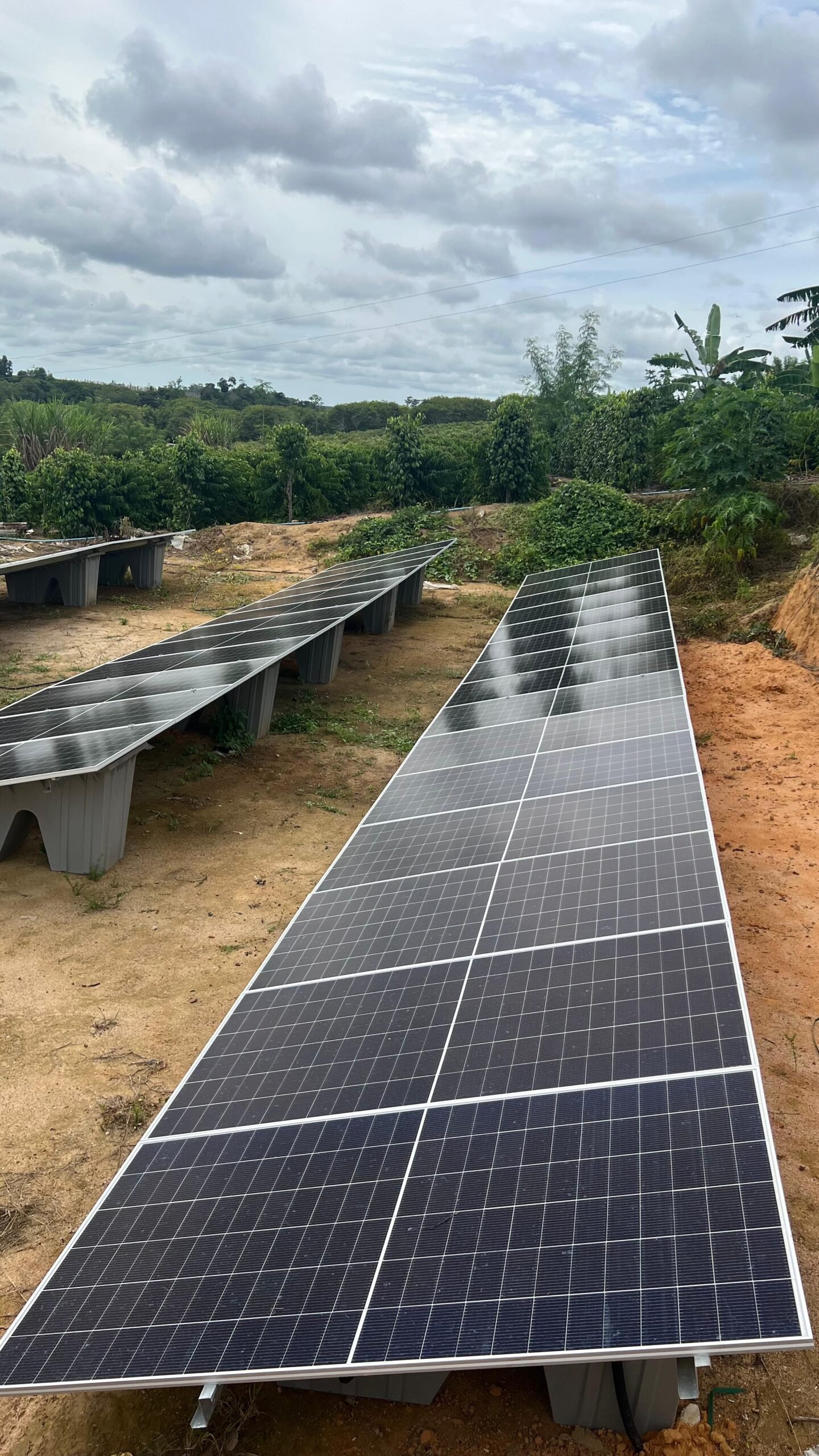 A 100 kW ground-mounted system powers irrigation and storage, replacing diesel generators and improving sustainability.